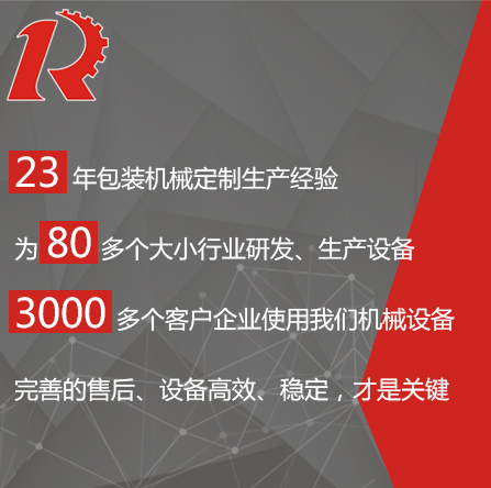 廣州市睿佳機(jī)械設(shè)備有限公司是國內(nèi)專業(yè)從事自動化包裝機(jī)械產(chǎn)品,集研發(fā)、生產(chǎn)、銷售、服務(wù)于一體的制造公司,已通過ISO9001:2008質(zhì)量體系認(rèn)證,部分系列產(chǎn)品已通過歐盟CE認(rèn)證。 經(jīng)過多年的發(fā)展,公司專業(yè)生產(chǎn):封尾機(jī),灌裝機(jī),旋蓋機(jī),貼標(biāo)機(jī),包裝機(jī),輸送機(jī),噴碼機(jī),灌裝生產(chǎn)線等機(jī)械設(shè)備。企業(yè)以開發(fā)生產(chǎn)包裝機(jī)械和訂做特殊包裝機(jī)械為主,所生產(chǎn)的包裝機(jī)械在同行和客戶中都得到一致的贊賞,以高技術(shù)和穩(wěn)定的質(zhì)量遠(yuǎn)銷東南亞和歐美。在國內(nèi),也成為多家知名藥廠、食品廠、化妝品廠指定使用產(chǎn)品。 睿佳機(jī)械:“想客戶之所想,急客戶之所急”既是睿佳對廣大客戶的承諾也是睿佳的宗旨,睿佳將與時代同步、銳意進(jìn)取,以更優(yōu)質(zhì)的服務(wù)回報(bào)廣大客戶對睿佳的信賴和支持。